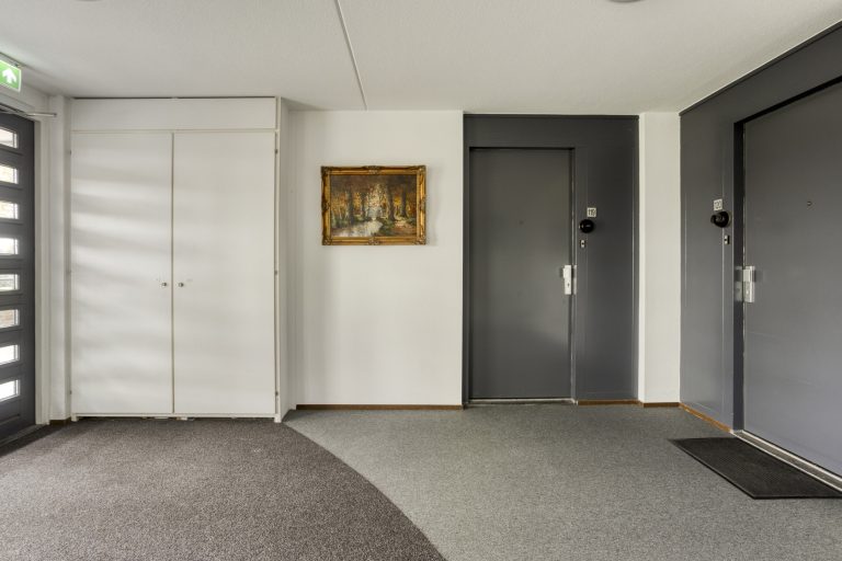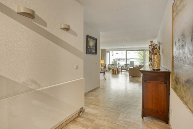 Vanuit de centrale hal toegang tot het appartement en de meterkast. De meterkast is uitgebreid en voorzien van voldoende groepen en aansluiting glasvezel.
