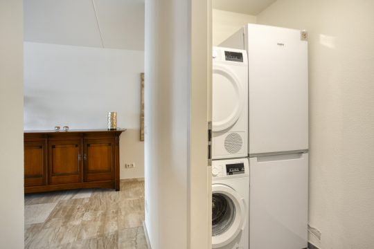 Vanuit de keuken is er toegang tot de bijkeuken. Hier bevinden zich de aansluitingen voor de was-apparatuur, de opstelling CV-combiketel (Remeha 2020), mechanische ventilatie unit (vernieuwd in 2020) en de unit voor de vloerverwarming.
