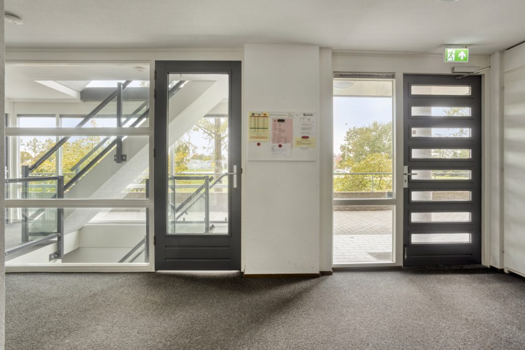 Vanuit de centrale hal toegang tot het appartement en de meterkast. De meterkast is uitgebreid en voorzien van voldoende groepen en aansluiting glasvezel.