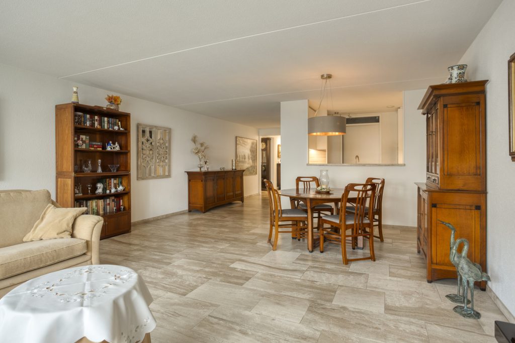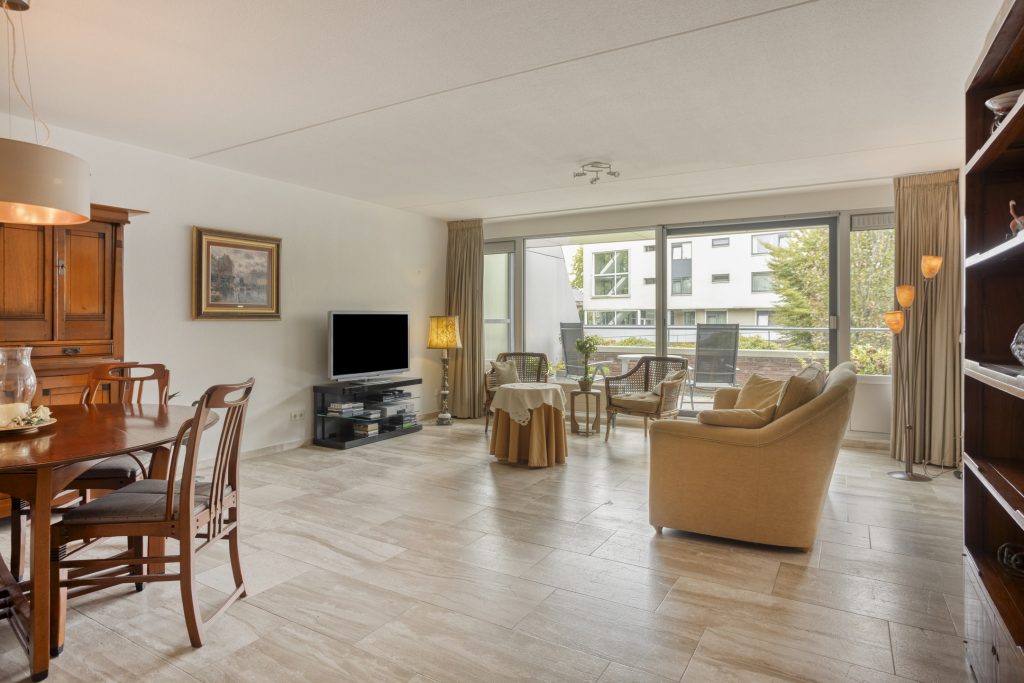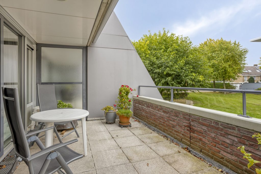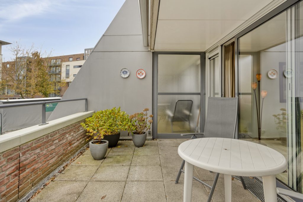 Vanuit de woonkamer is er middels de schuifpui toegang tot het balkon (ca. 15 m²) welke is gesitueerd op het zonnige zuiden en hier geniet u van een mooi uitzicht. Het balkon is voorzien van terrastegel, buitenverlichting, elektra en zonneluifel (scherm vernieuwd in 2024).