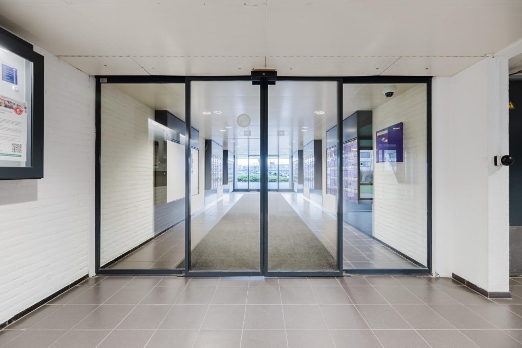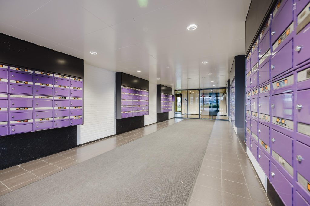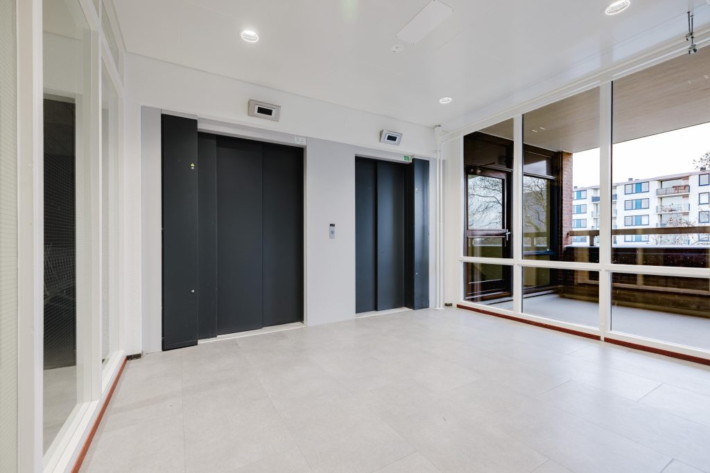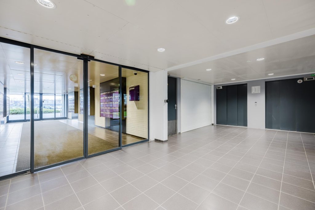 Via de gezamenlijke entree betreed je het complex. De entree is voorzien van twee elektrische schuifdeuren en biedt toegang tot de brievenbussen, het bellentableau en de doorgang naar de centrale hal. Vanuit hier zijn onder andere de twee liften, de containerruimte, de dienstruimte en de centrale trappenhal bereikbaar. Alles is netjes onderhouden en overzichtelijk ingericht. Met de lift of trap bereik je de vijfde verdieping, waar het appartement is gelegen.