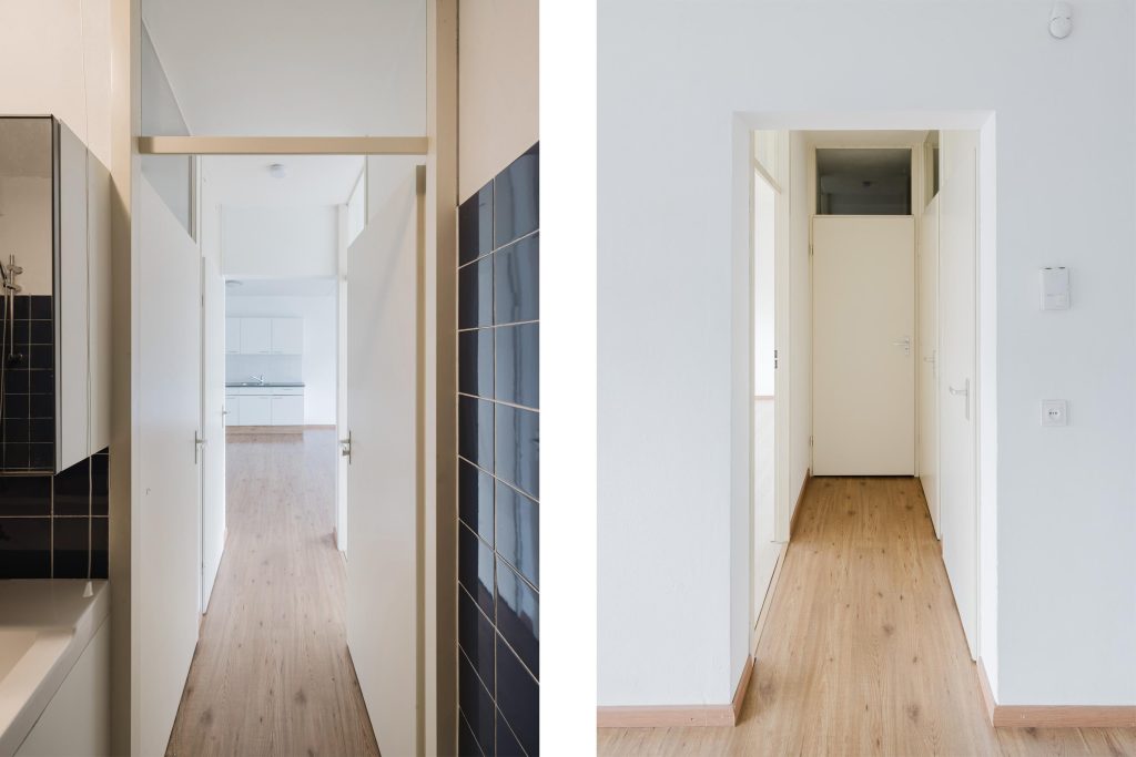 Vanuit de hal heb je toegang tot zowel de woonkamer, de slaapkamer en de badkamer.