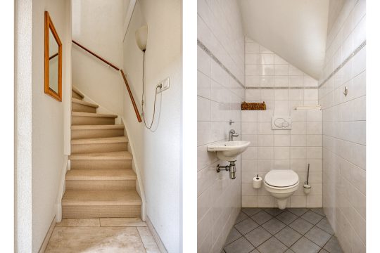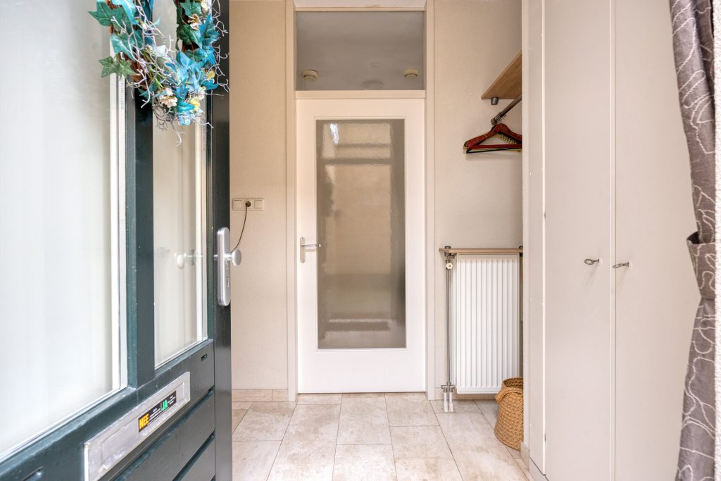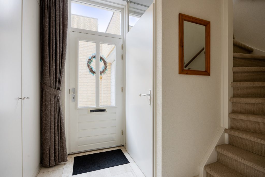 Bij binnenkomst betreedt u de nette hal met meterkast, toilet, trapopgang en de woonkamer.