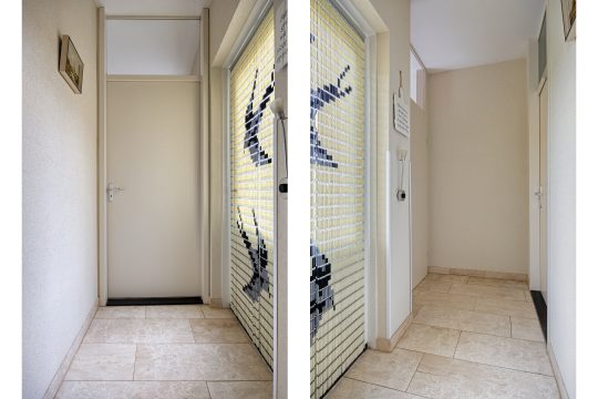 Portaal met toegang tot de slaapvleugel en de inpandige garage.