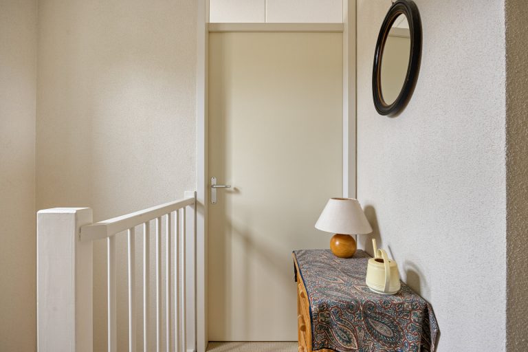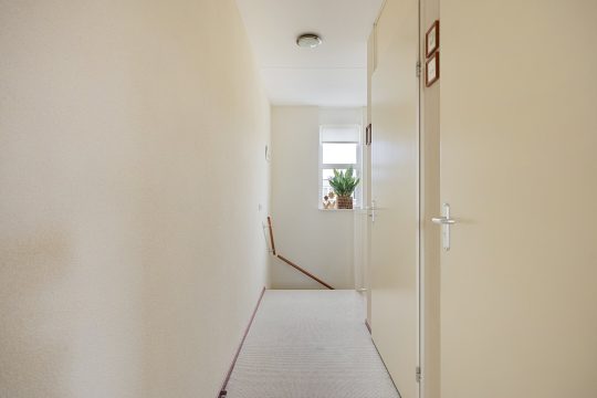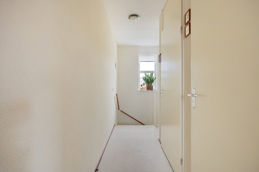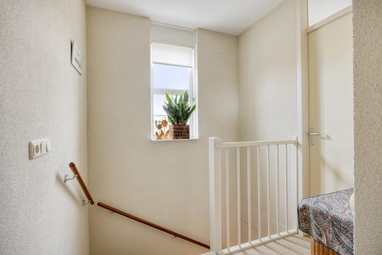 Overloop, middels vaste trap bereikbaar, met toegang tot twee slaapkamers, extra badkamer en wasruimte.