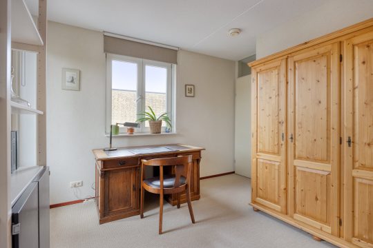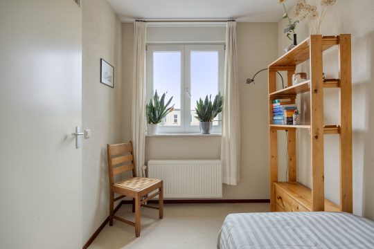 Slaapkamer 3 aan de achterzijde gelegen, ook afgewerkt met vloerbedekking.