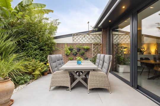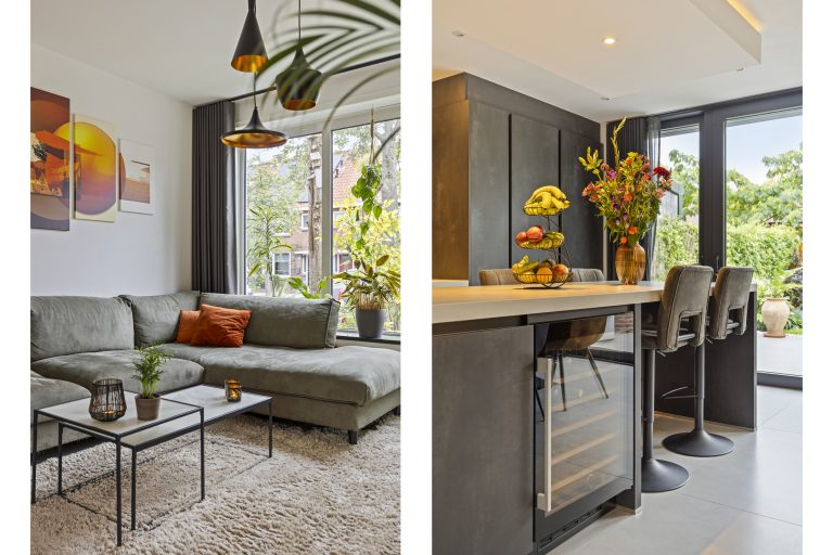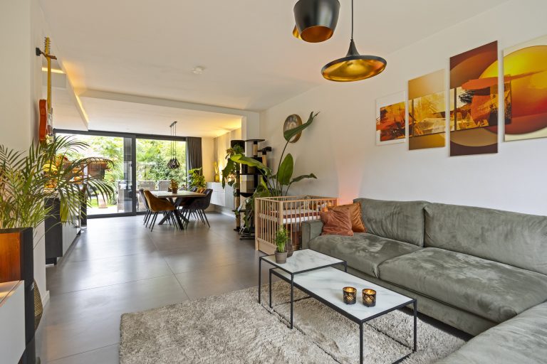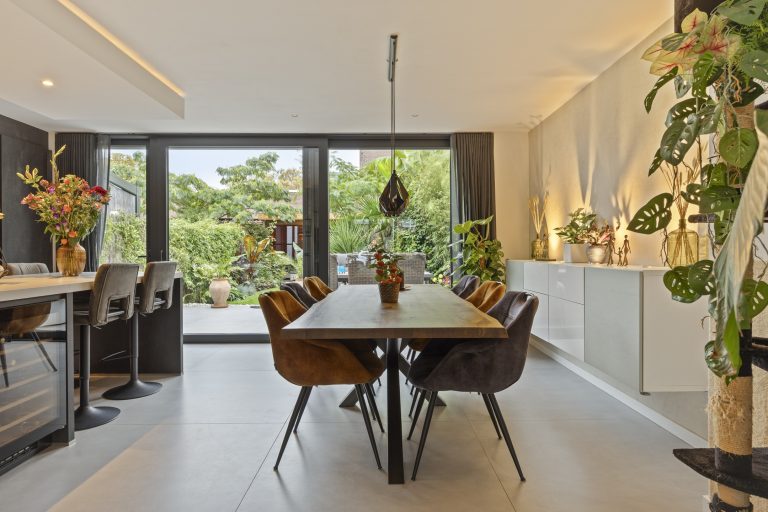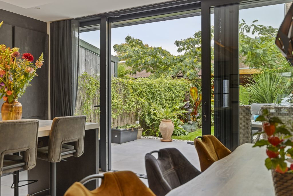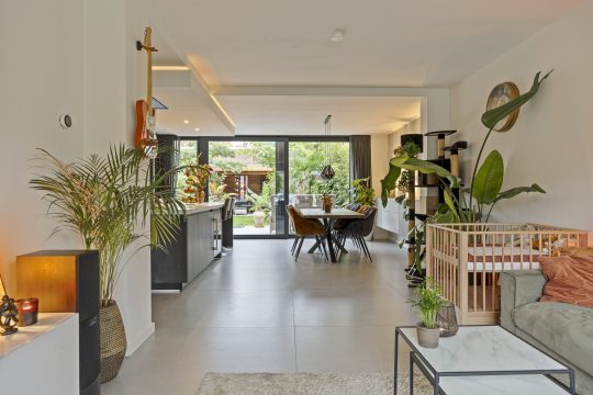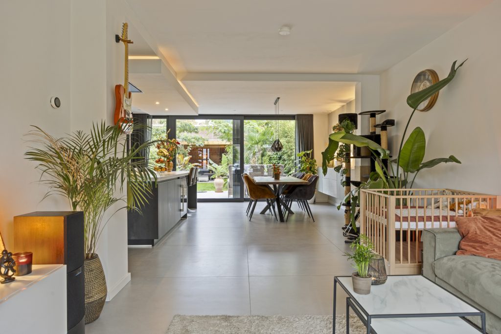 * Lichte woonkamer en luxe woonkeuken met schuifpui naar de tuin