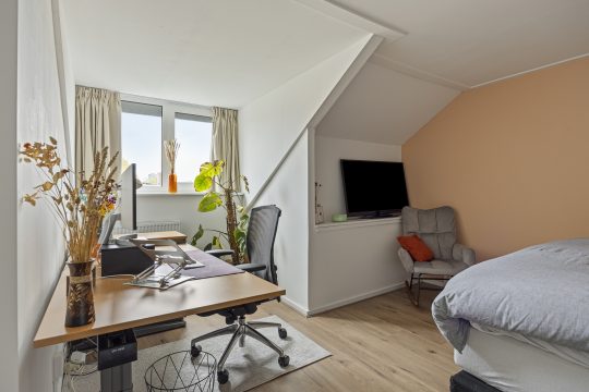 Middels een vaste trap bereikt u de voorzolder met laminaatvloer, aansluitingen voor wasapparatuur, de opstelling van de cv-combiketel en airconditioning. Er is een werk-/bergkamer voorzien van laminaatvloer en dakvenster. De vierde slaapkamer is een ruime zolderkamer met dakkapel en vaste kast, afgewerkt met gestuukte wanden en laminaatvloer.