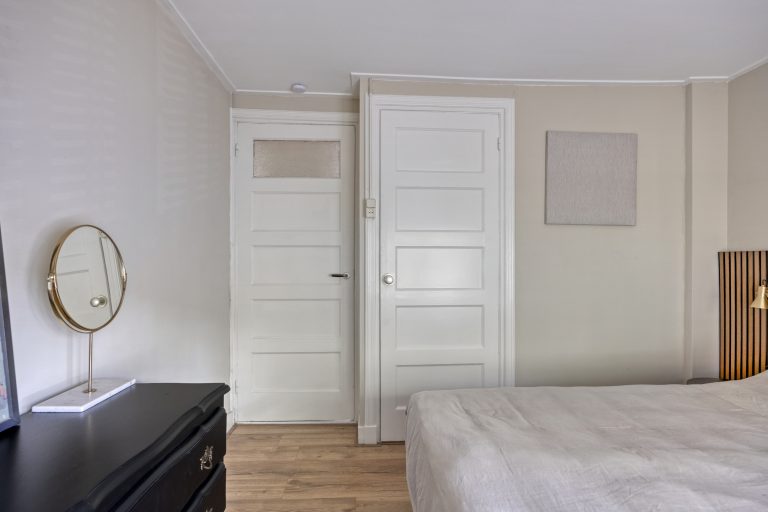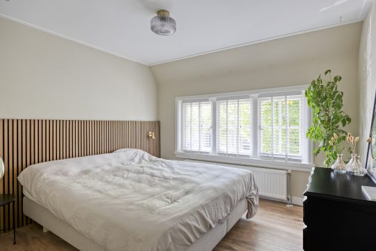 Slaapkamer 1: Is gelegen aan de voorzijde van de woning en voorzien van een laminaatvloer, radiator, raampartij en een inbouwkast.