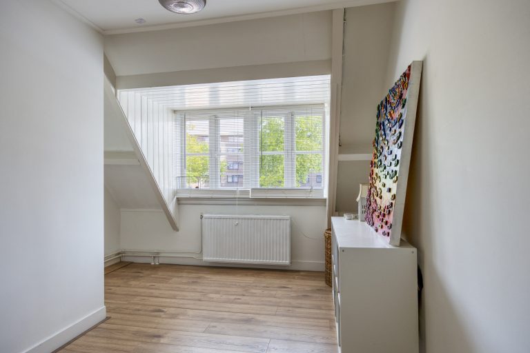 Slaapkamer 2: Is gelegen aan de achterzijde van de woning en voorzien van een groot dakkapel, inbouwkast, radiator en een laminaatvloer.