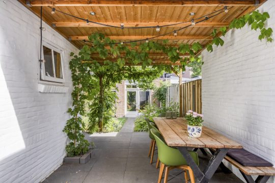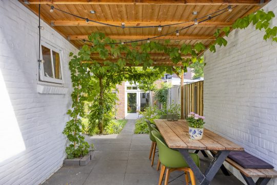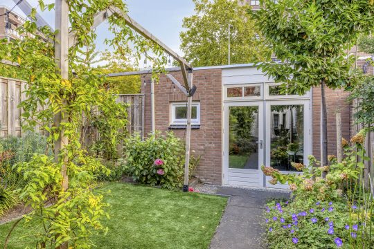• De woning beschikt over een fraai aangelegde en diepe achtertuin voorzien van een overkapping en meerdere terrassen.