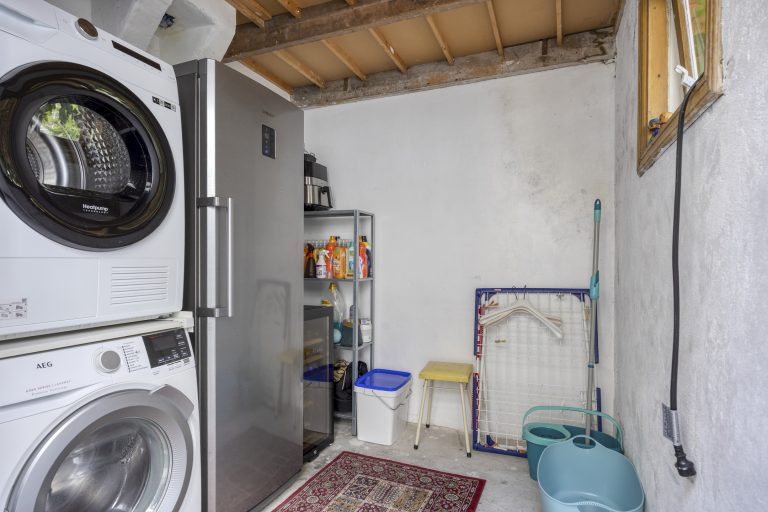 Vrijstaande stenen berging met vliering, elektra en aansluiting was-apparatuur.