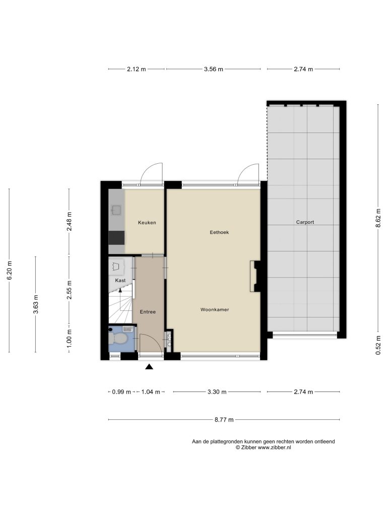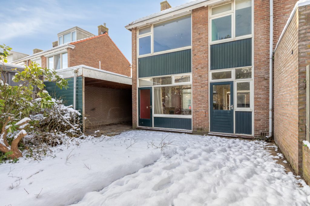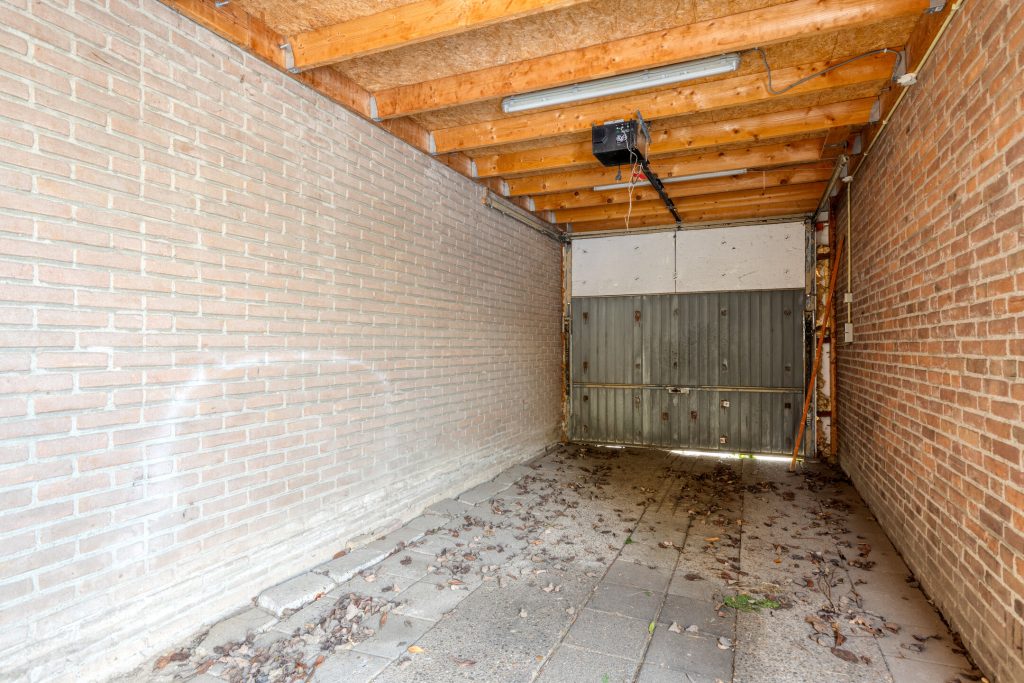 Aan de zijkant van de woning bevindt zich een garage/carport. Voorzien van een stalengaragedeur met loopdeur.