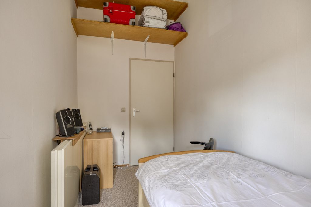 Drie lichte slaapkamers met een hoog plafond, wat zorgt voor een ruimtelijk gevoel. De slaapkamers zijn afgewerkt met tapijt, behang en spuitwerk plafondafwerking.