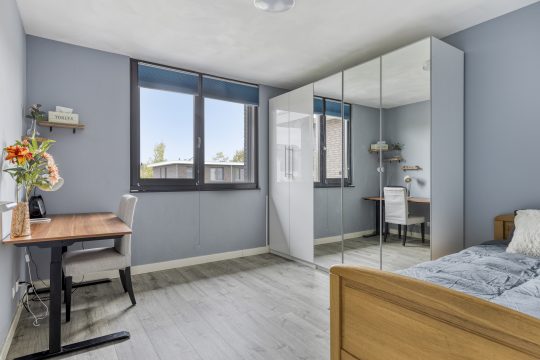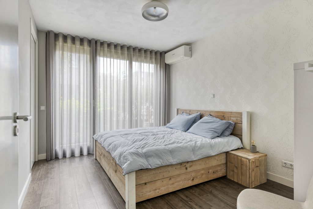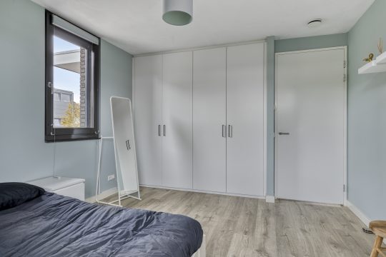 Aan de voorzijde van de woning bevinden zich 2 ruime slaapkamers beide voorzien van maatwerk inbouwkasten en diverse raampartijen voorzien van elektrisch bedienbare screens.