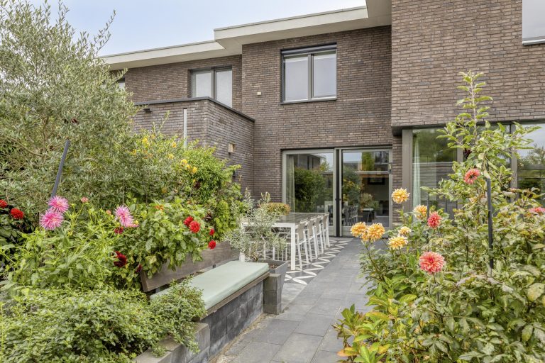Royaal opgezette en duurzaam gebouwde 2-onder 1 kapwoning met meer dan 200m² woonoppervlakte, energielabel A+++, warmtepomp(lucht), vloerverwarming/koeling, 6 slaapkamers waaronder 1 op de begane grond met en-suite badkamer, luxe open woonkeuken, inpandige (fietsen)berging , eigen oprit met parkeergelegenheid voor 2 auto`s en een fraaie aangelegde achtertuin met berging en een sfeervolle af te sluiten buitenruimte met glazen panelen en loungehoek.