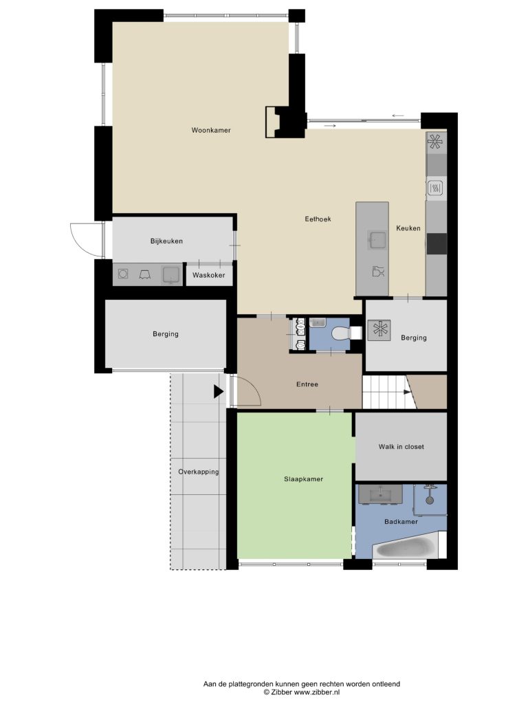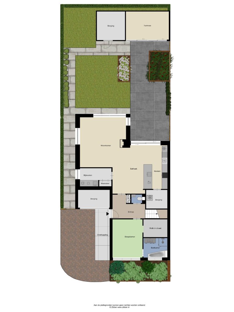Achter de keuken ligt nog een ruime inpandige berging met een extra wateraansluiting en ruimte voor opstelling witgoed.