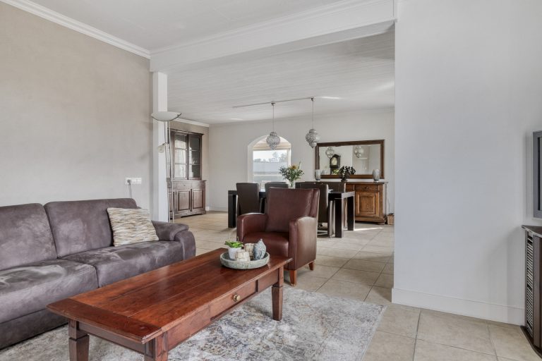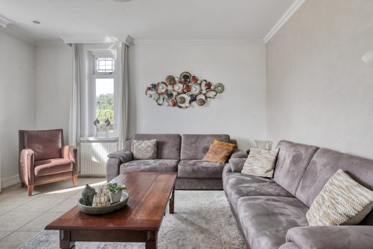 Sfeervolle woonkamer gelegen aan de voorzijde van de woning. De woonkamer biedt toegang tot de inpandige hal, keuken en serre.