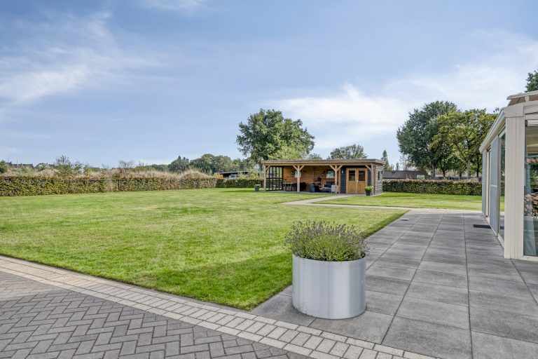 • Royaal perceel: De woning staat op een perceel van 2.300 m² met een fraai aangelegde tuin, gazon, sierbestrating en een overkapping met berging.