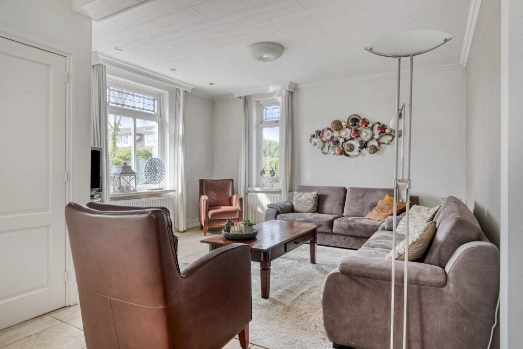 Sfeervolle woonkamer gelegen aan de voorzijde van de woning. De woonkamer biedt toegang tot de inpandige hal, keuken en serre.