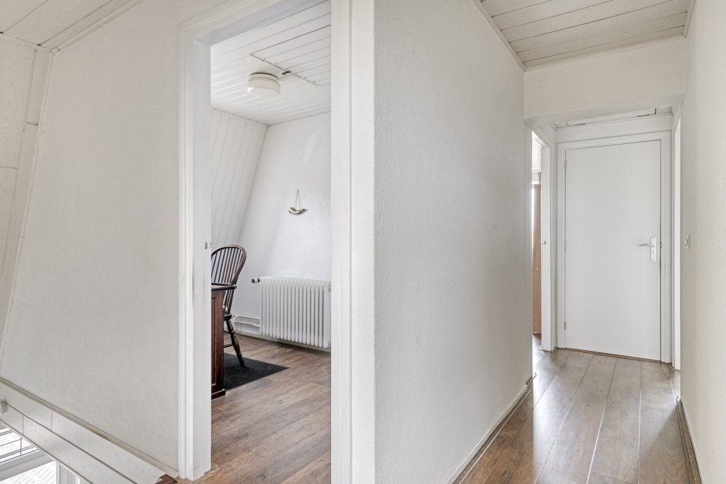 Tussenportaal met trapopgang naar de verdieping en toegang tot de badkamer.